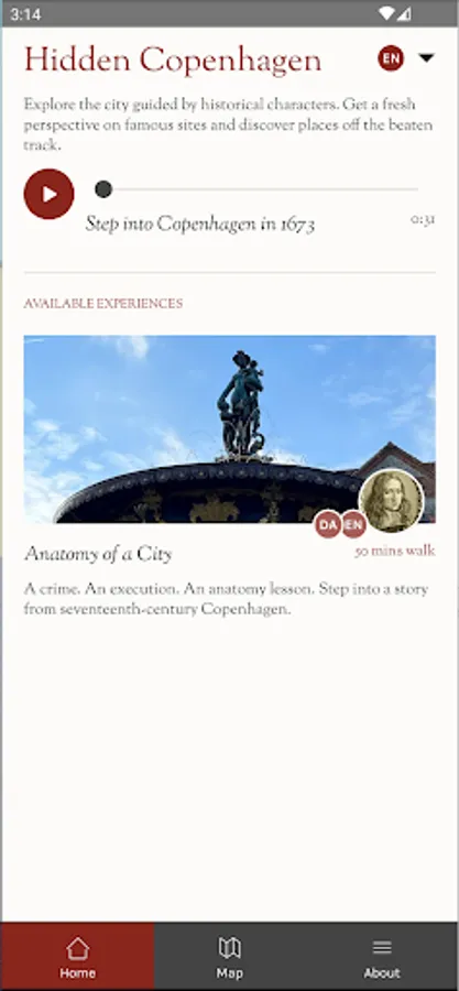 Tilgængelig på engelsk og dansk. Guidede audiobyvandringer anført af historiske karakterer – og med ekspertkommentarer. Få et unikt perspektiv på Københavns historiske seværdigheder, og oplev steder uden for de sædvanlige ruter.
