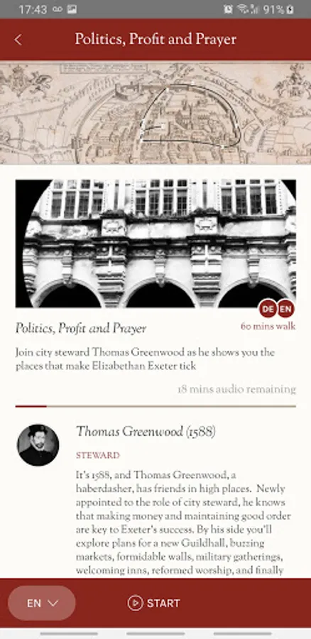 Erleben Sie Exeter durch die Augen eines Stadtbewohners der Epoche Frühe Neuzeit: er führt Sie zu bedeutenden Orten seiner Zeit und erzählt dazugehörige Geschichten.