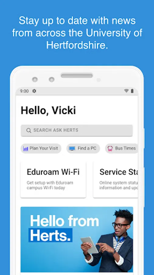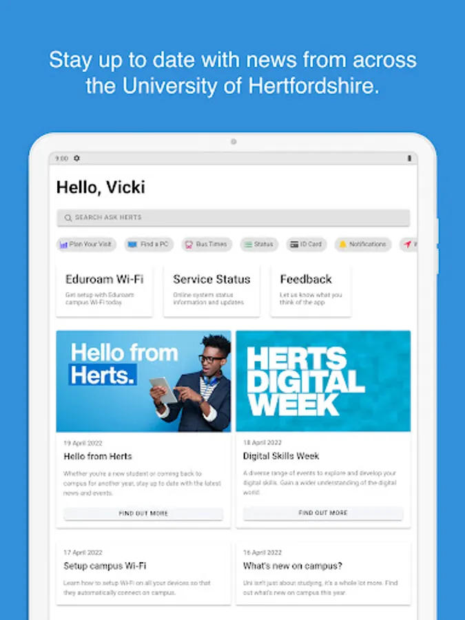 Herts Mobile, the app for University of Hertfordshire Students, Staff and Visitors.
