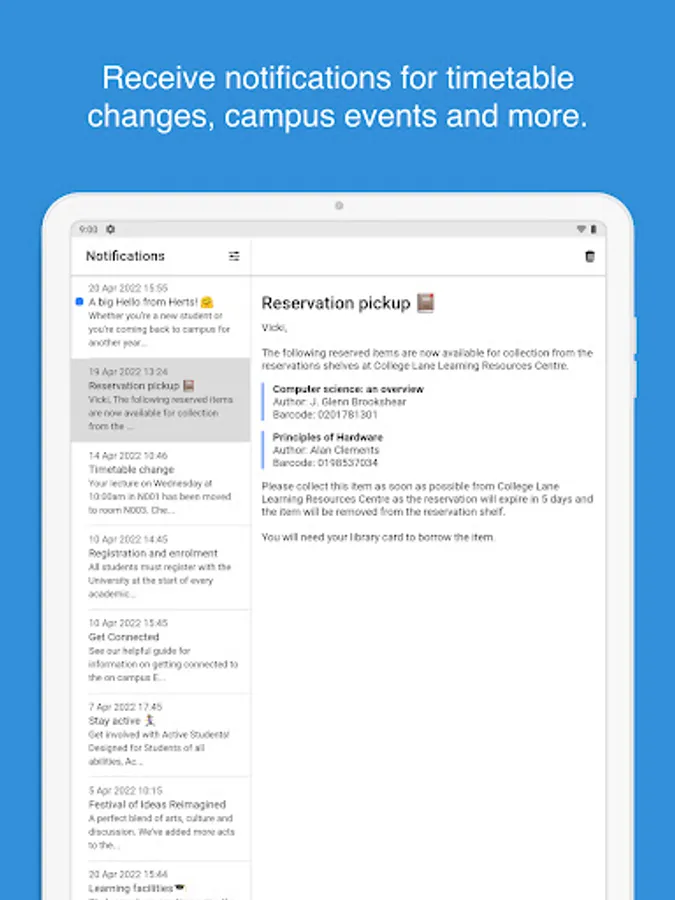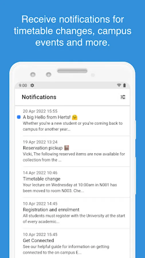 - Receive notifications for timetable changes, events and more. Choose the types of notification you’d like to receive so you only get the updates you’re interested in.
