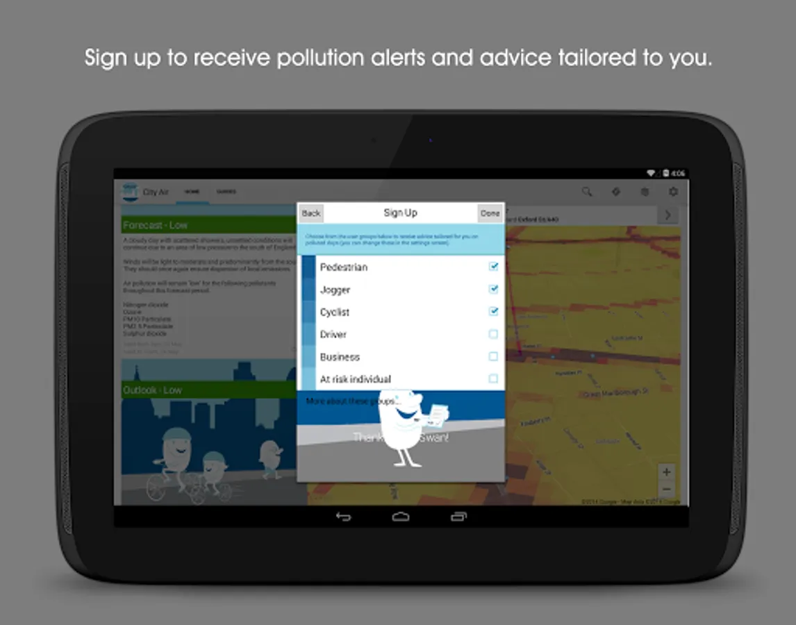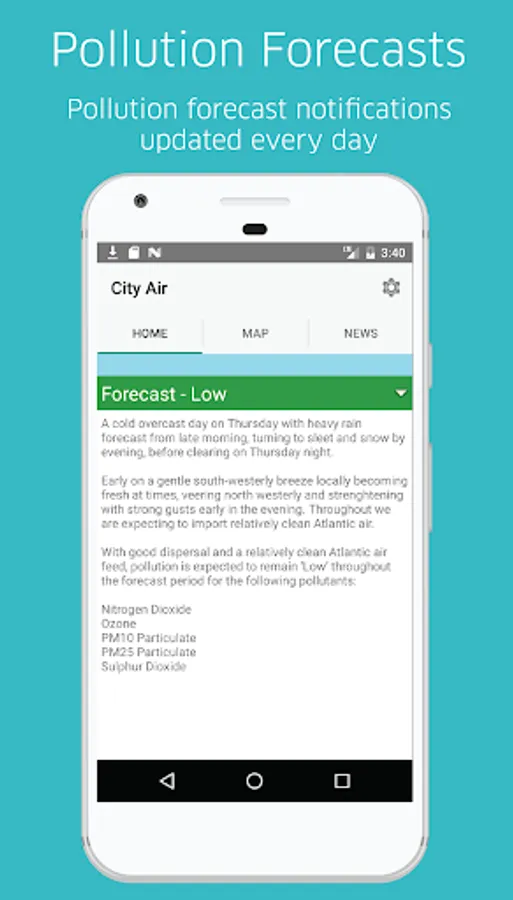 The CityAir app will alert you on days when pollution is forecast to be high and give you tailored advice on simple actions you can take to reduce your emissions and exposure to air pollution.