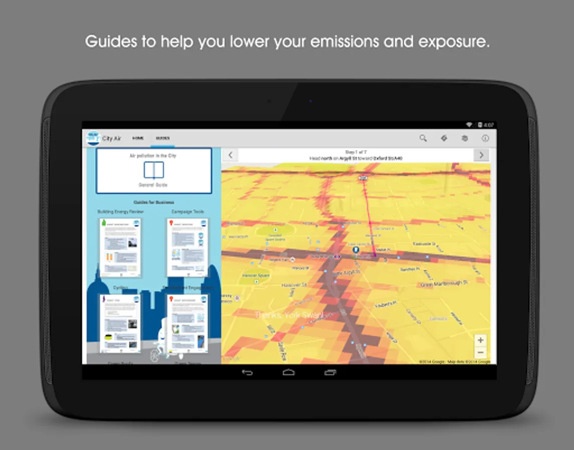 Use the map to plan your journey and easily pick the lowest pollution route through the City - even in 3D!