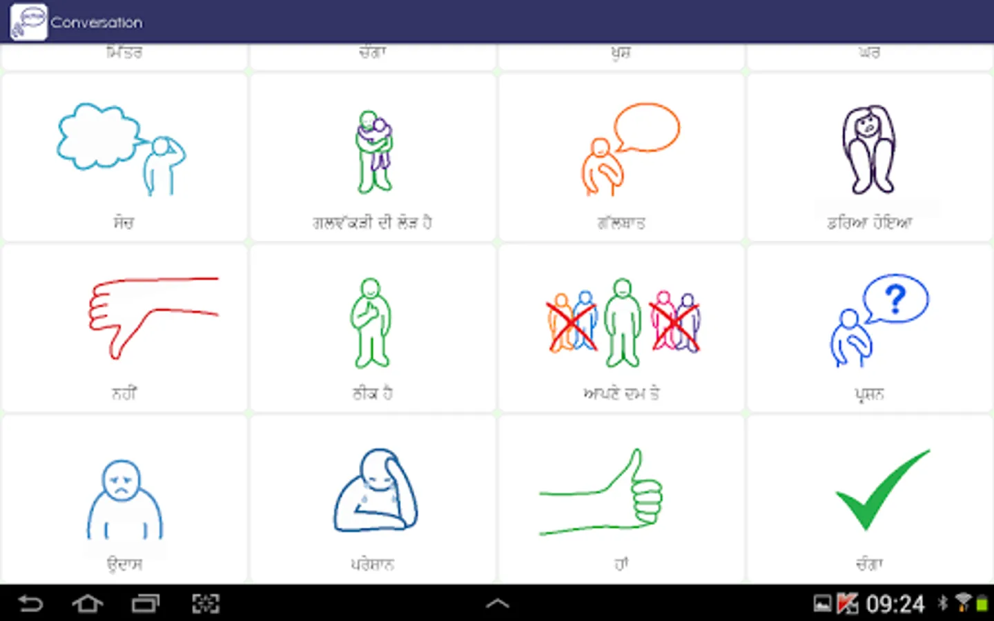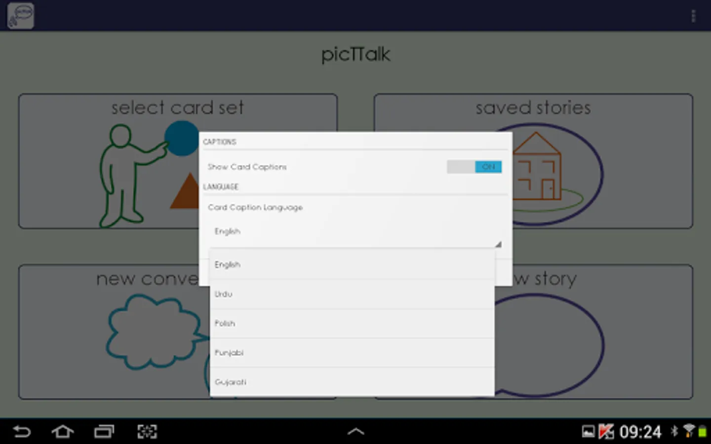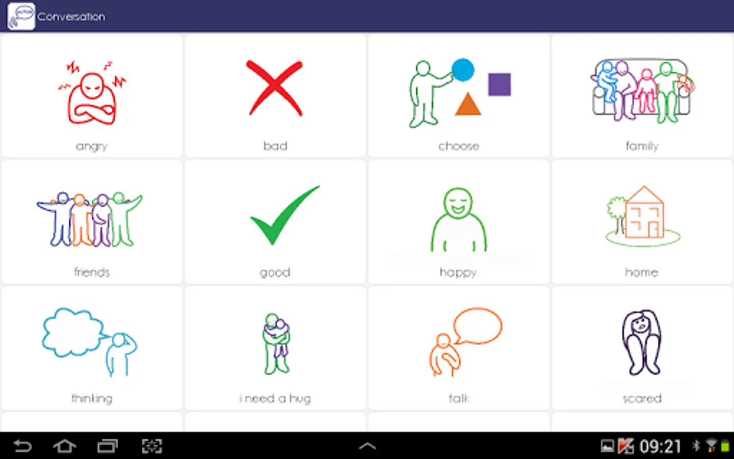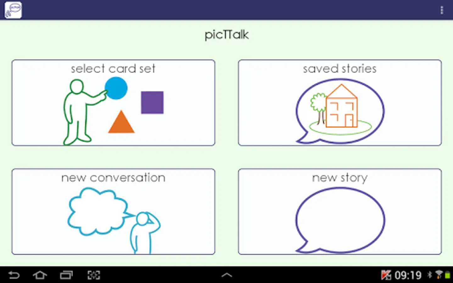 The picTTalk app was developed for use on tablets with 10” screens. Although the app will work on devices with smaller screens, it is recommended that in this case the app is only used in ‘Conversation Mode’ with single pictograms.