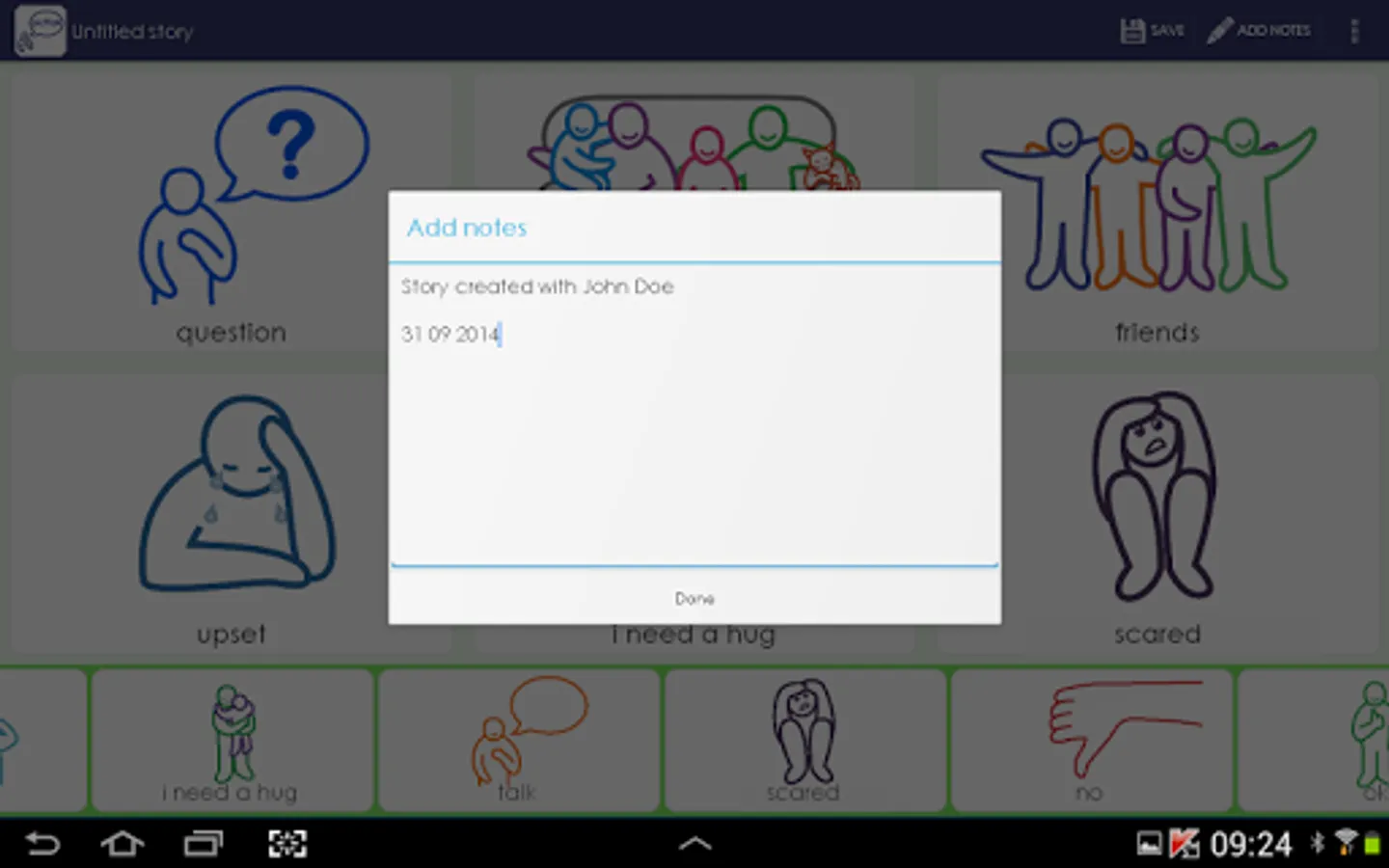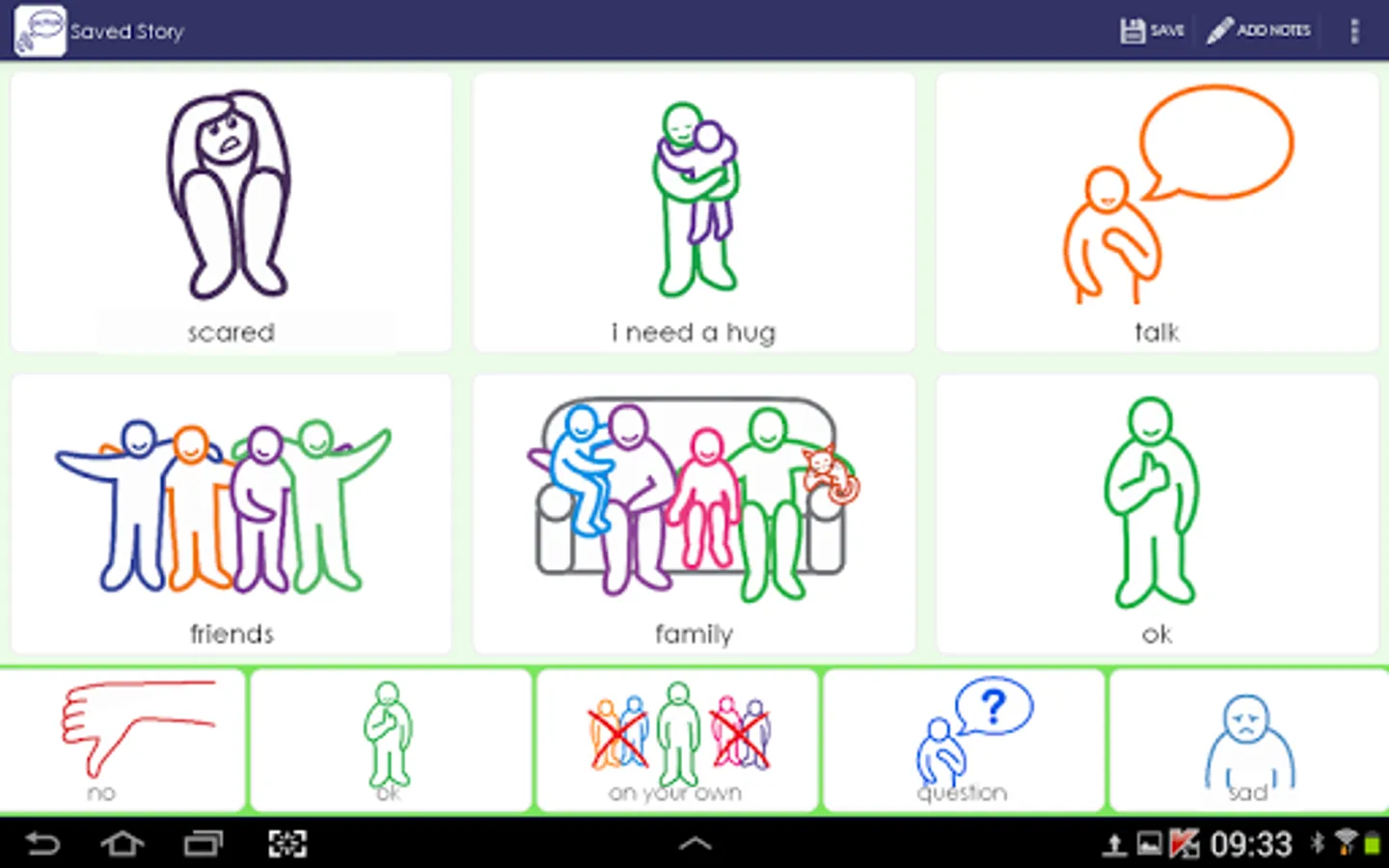 A group of pictograms can help people to share their story by linking up to six pictograms into a storyboard.