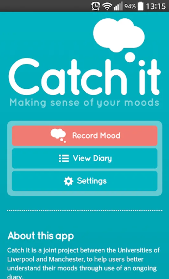 Catch It is a joint project between the Universities of Liverpool and Manchester, to help users better understand their moods through use of an ongoing diary.