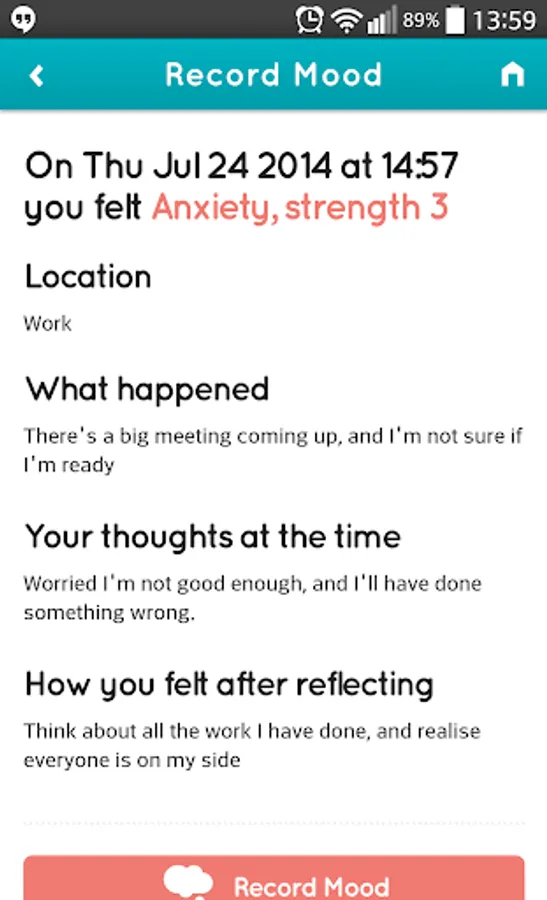 The app was designed to illustrate some of the key principles of psychological approaches to mental health and well-being, and specifically Cognitive Behavioural Therapy (CBT).