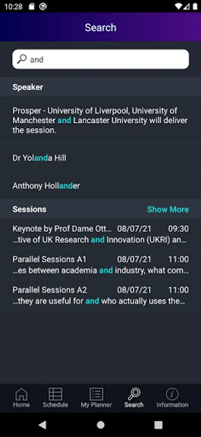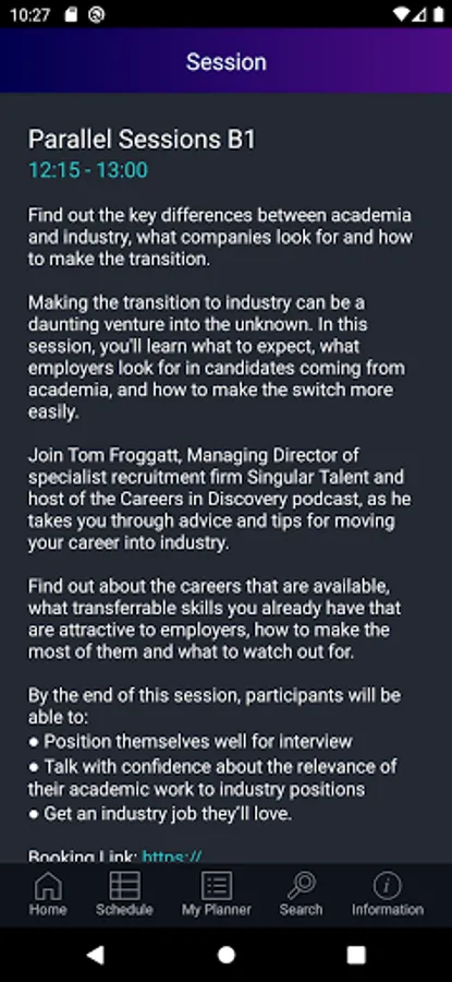 This app is for attendees of the National Postdoc Conference 2021. The App provides a range of features to enhance the attendee’s experience, including the ability to create a personalised itinerary.