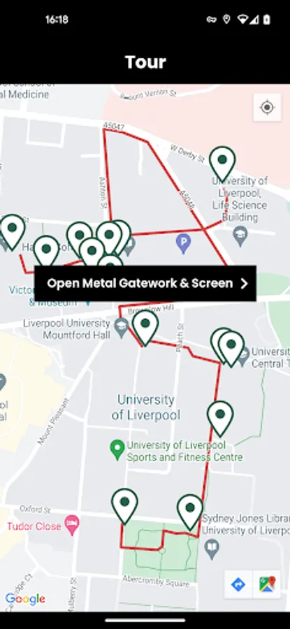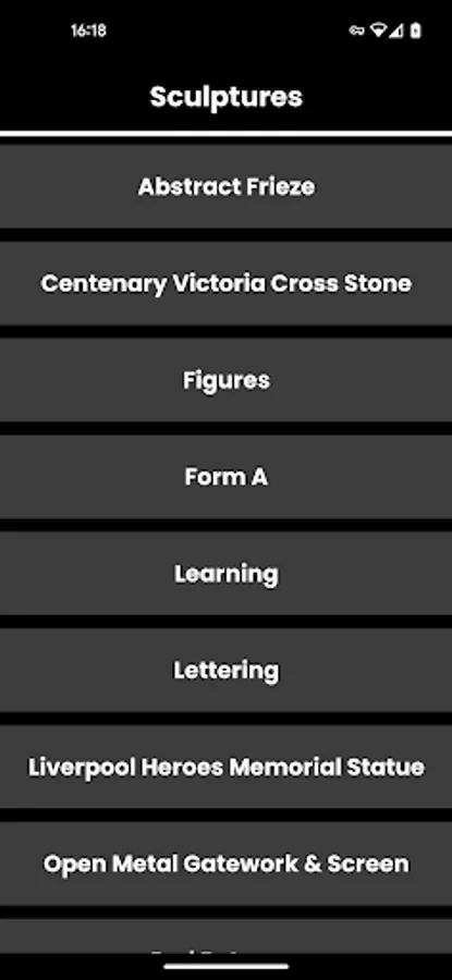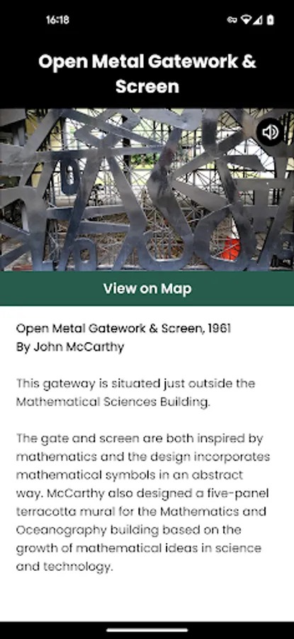 All the sculptures are displayed outside and can be viewed by following the app’s route around campus. The app shows a photograph of each sculpture, accompanied by textual information and an audio description.