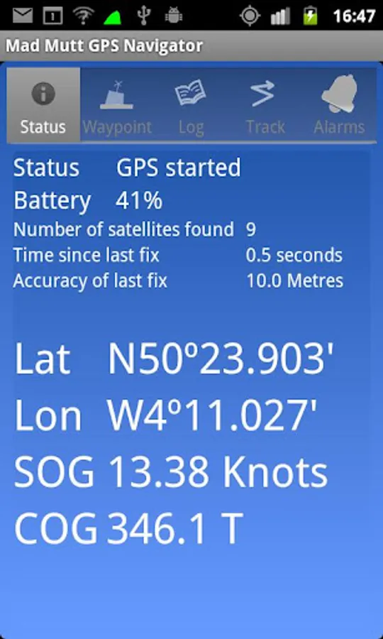 It is not a chart plotter. This application is intended for marine navigation. Although it could be used by ramblers, that isn’t the main intention. It does not display digitised charts, nor does it show you a Google Map view with your position displayed on it. I believe it is highly irresponsible to encourage the use of Google maps to navigate boats. Even in rivers and estuaries, Google maps contain no semantics for the sea whatsoever; no lights and marks, depths, rocks etc. The application does allow you to send logs you have made to Google Maps, though, but only after you have completed the trip.