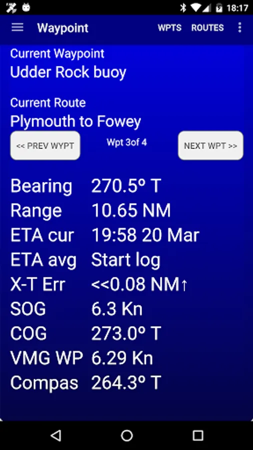 •ETA to waypoint and VMG to waypoint are available.