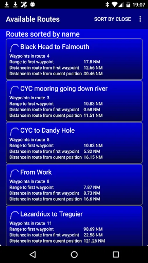 •View waypoints alphabetically of by distance from your current position.