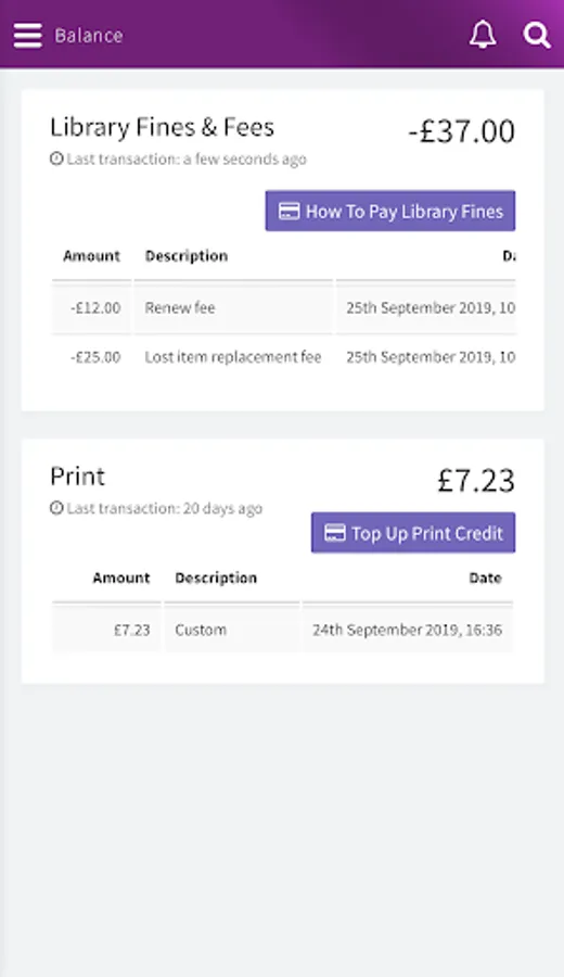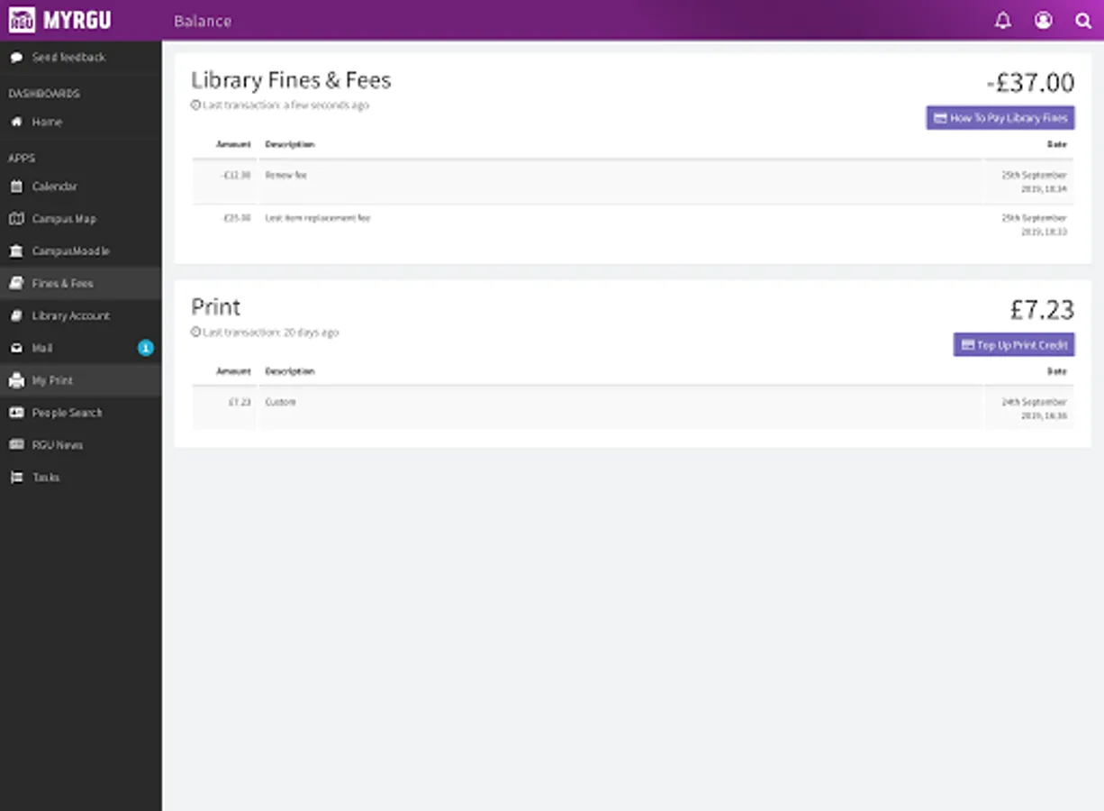 • Balances – you can check how much print credit you have.