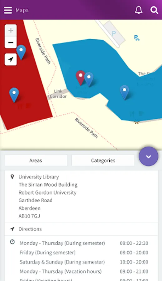 • Moodle integration – provides details of your assignments and courses, as well as notification of assignment deadlines and grades.