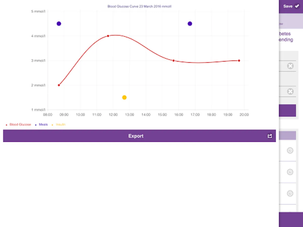 • visualisation of trends (using graphs), including changes in thirst, weight, fructosamine, average blood sugar values, urine ketones or sugar values, etc.