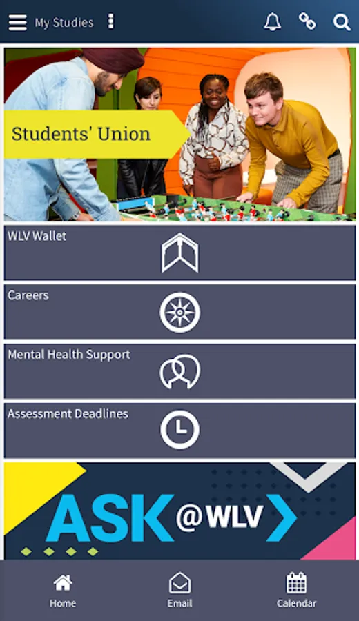 The myWLV mobile app provides an easy-to-use, personalised and effective system. The app provides you with everything you need in one place and with notifications to keep you updated, myWLV will be your go-to app for your learning experience.