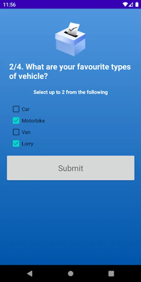 For each election, users have the ability to answer a variety of questions. This app supports four types of questions: 1) single-choice selection; 2) multiple-choice selection; 3) free numeric input, and 4) free text input. For the first two types, users can verify the integrity of the tally without compromising privacy. This is based on the implementation of a Direct Recording Electronic with Integrity (DRE-i) cryptographic protocol. For every vote cast, a receipt is returned which can then be checked against the eVoting Bulletin Board at https://easyevoting.com/classroombulletinboard.php