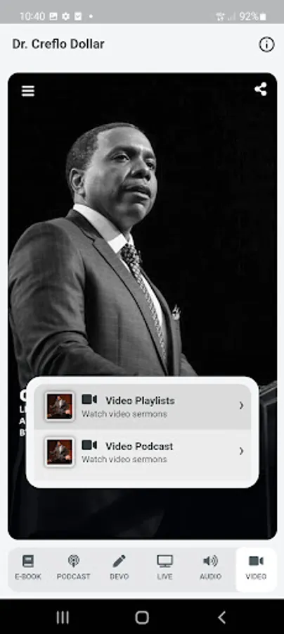 Listen to Dr. Creflo Dollar's sermons, watch video podcasts and playlists, and read E-books & Daily Devotional. You can also watch Changing Your World Network (CYWN) 24 hours a day (which is a live TV broadcast by Creflo Dollar Ministries).