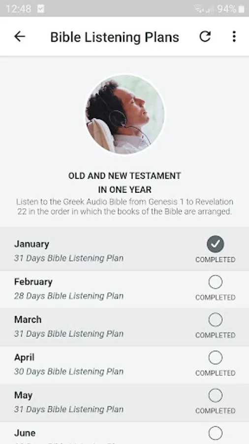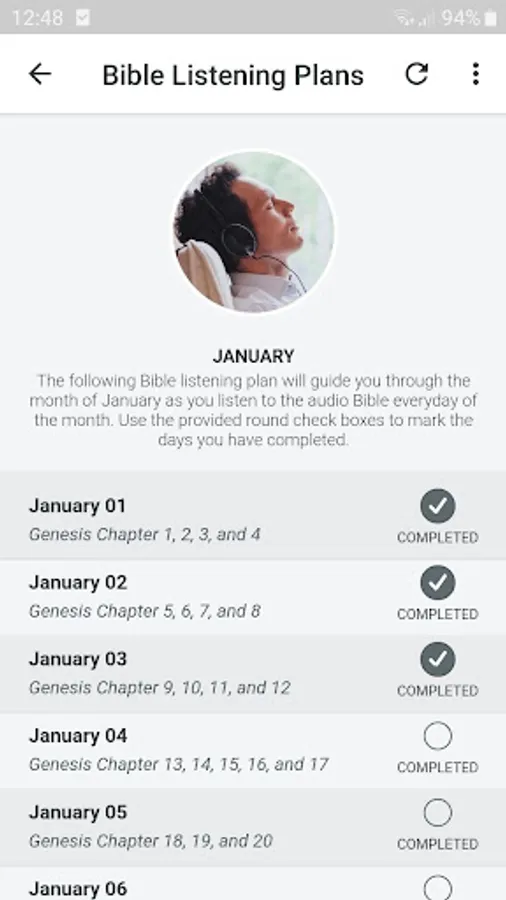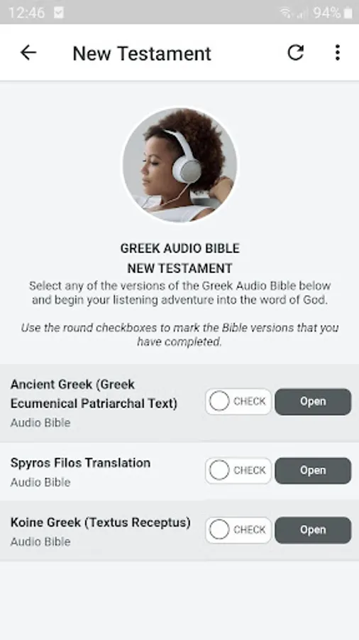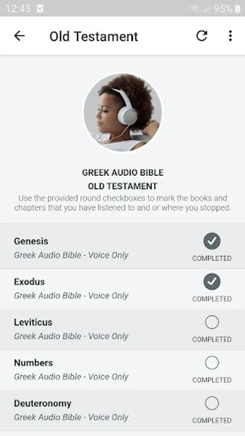 Each section of the app features round checkboxes which you can use to mark individual audio, chapter or plans that you have listened to or completed. This helps you to monitor your progress.