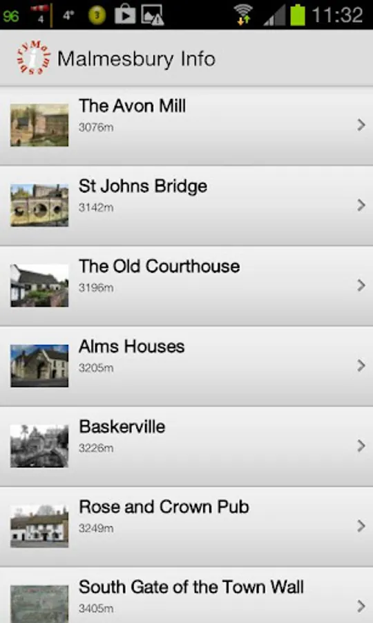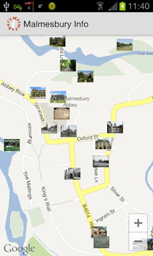 A 'must have' app for every tourist visitor to the historic town of Malmesbury, England, this simple app uses your phone's GPS to show you a list of historic landmarks and buildings in Malmesbury. Devices running Android 3 or greater can also display an interactive map of these places. Selecting a location in the list or on the map brings up a more detailed screen with further information, a larger photo, an option to get walking directions to the location, and a website link (where applicable) for even more information.