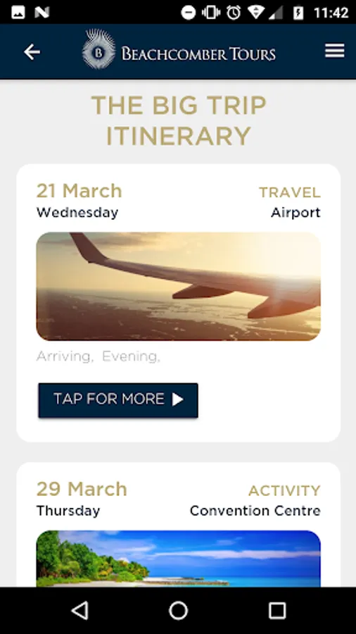 Users can receive an up-to-date itinerary for their Beachcomber educational trip, updated in real-time.
