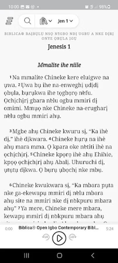 Igbo language is one of Nigeria's popular languages spoken by the Igbo people. With this app, you can listen to the complete Igbo Audio Bible (Old and New Testament) and read along with text. The app features:
