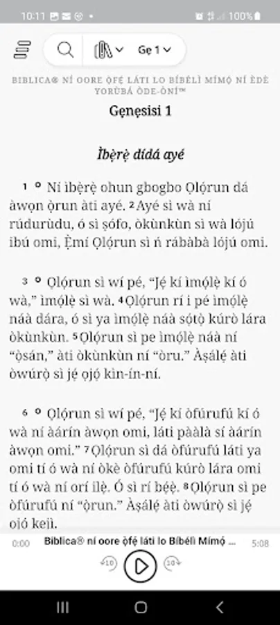 Yoruba language is one of Nigeria's popular languages spoken by the Yoruba people. With this app, you can listen to the complete Yoruba Audio Bible (Old and New Testament) and read along with text. The app features: