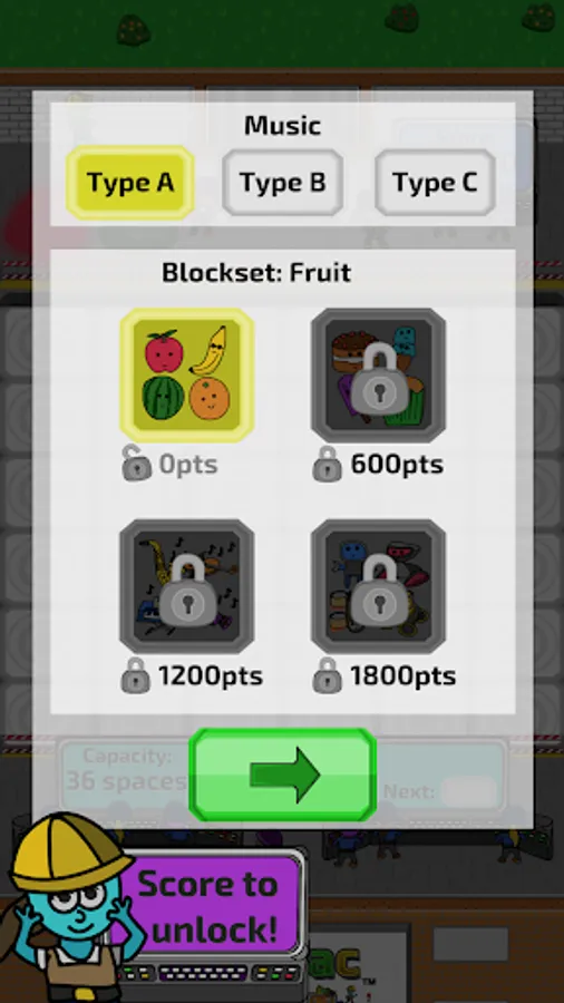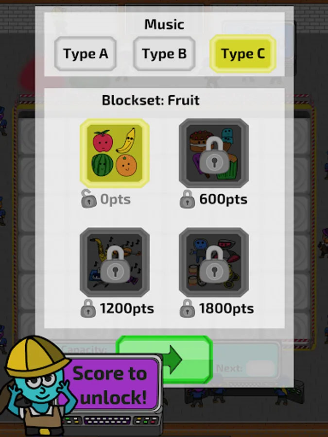 -Multiple unlockable block sets, unlocked via high scores (not IAPs)