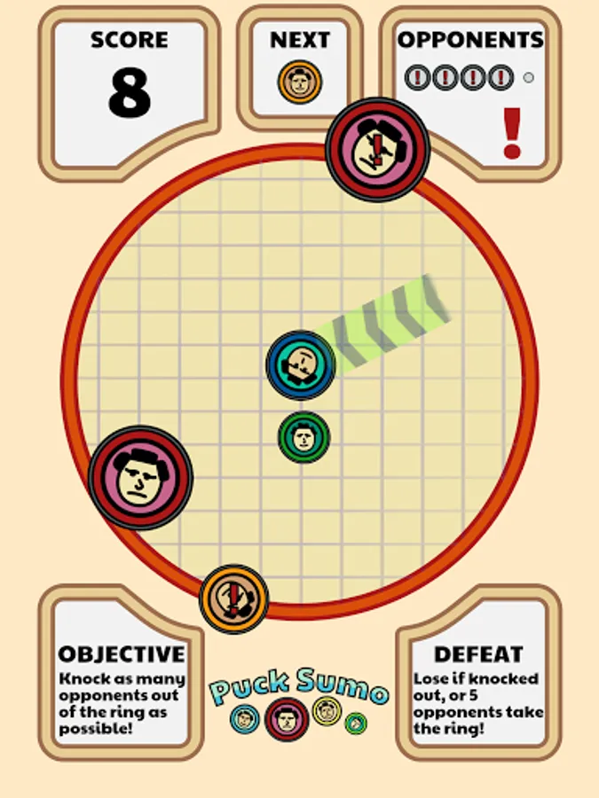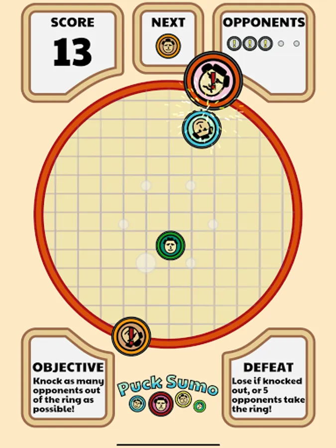 Puck Sumo is a hyper casual game - one touch controls, free with no Ads or IAPs.