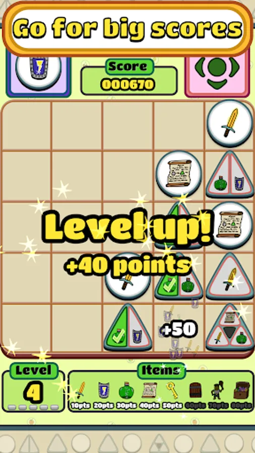 In Triapse, you combine the required items into the tri-counters to score and clear. The task gets progressively harder though as subsequent items are thrown into the mix, with the next move always down to you...