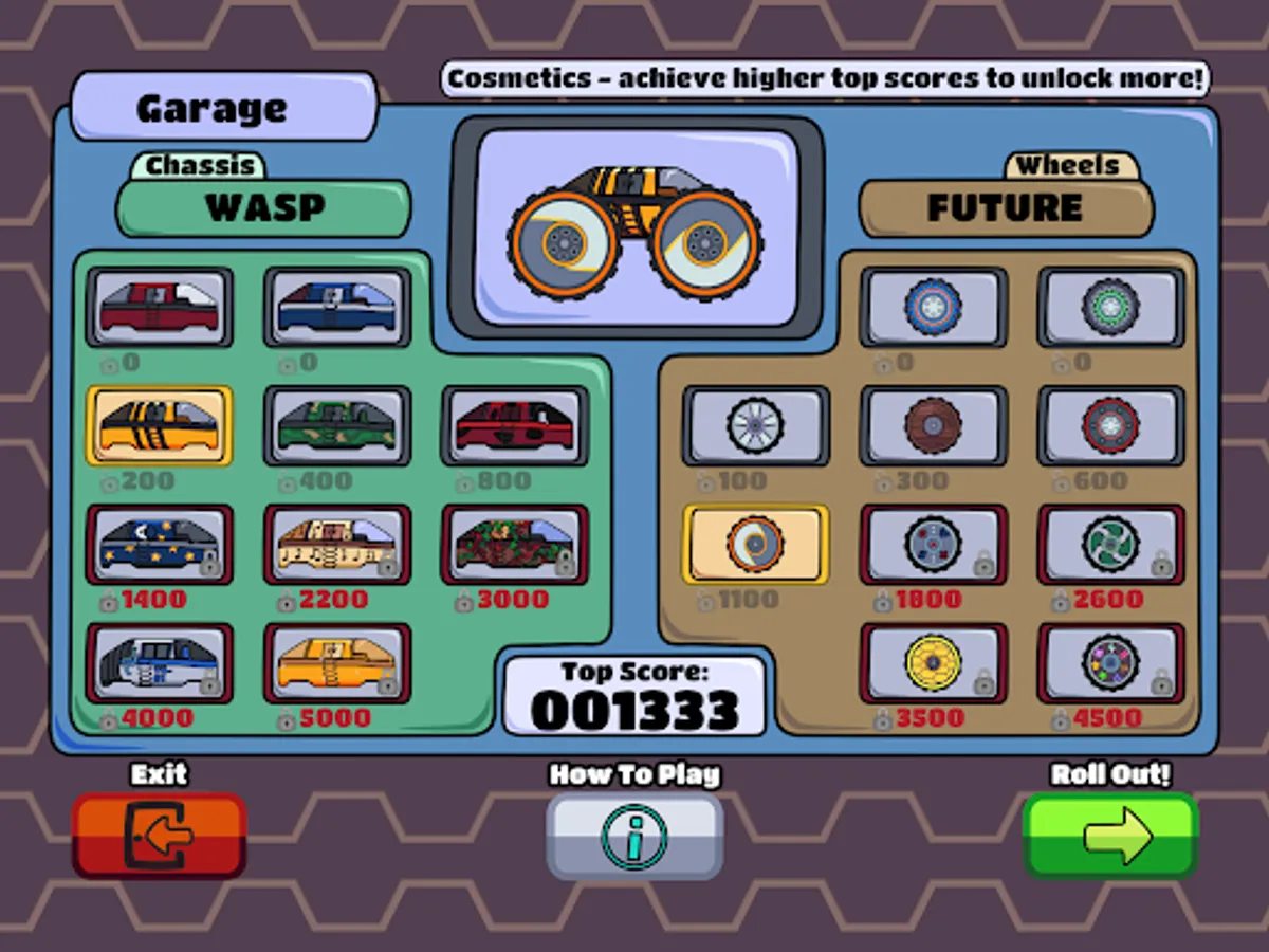 -Skill based unlocks: A variety of wheel and chassis styles can be unlocked, the higher the player scores.