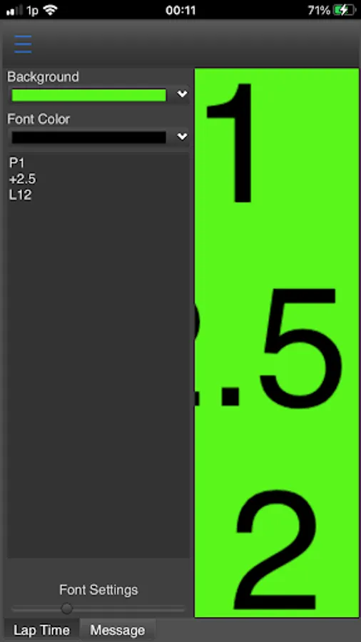 Turn your Phone/Tablet into a professional Pitboard. Set the lap times and watch the screen go Green (faster), Red (slower) or Purple (fastest lap) while automatically formatting the time.