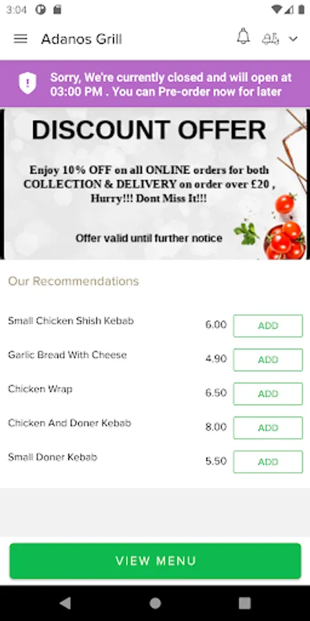 Thank you for visiting Adanos Grill in Wirral. We hope you enjoy our online ordering app and your food.