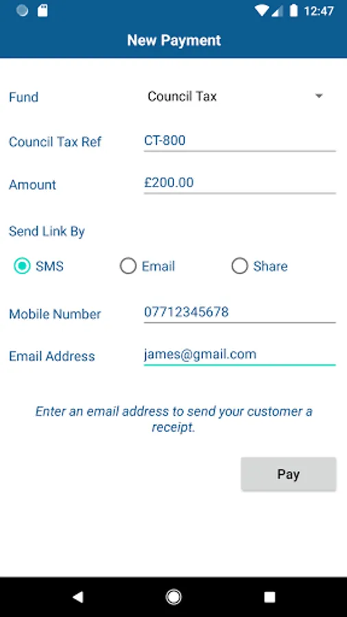 The app is designed to allow mobile workers to accept payments from card holders in a face to face environment. The app works by sending cardholders a secure link that allows them to go online and complete a card payment. Once the payment is complete the result of the payment is posted into the app and also the SmartPay income management system.