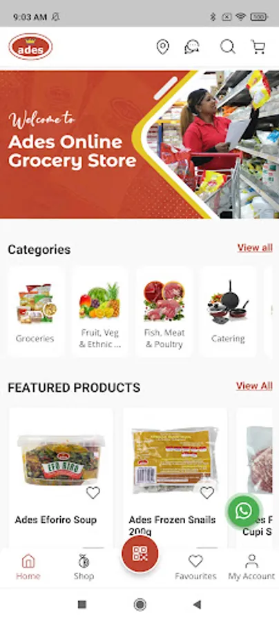 Ades App has all the functionalities of the website. You can manage your account, shop, check out, choose your delivery option and pay on the App.
