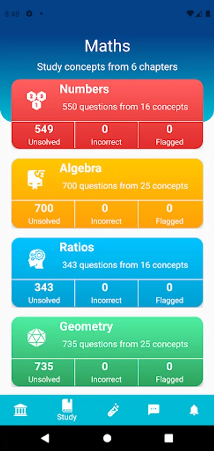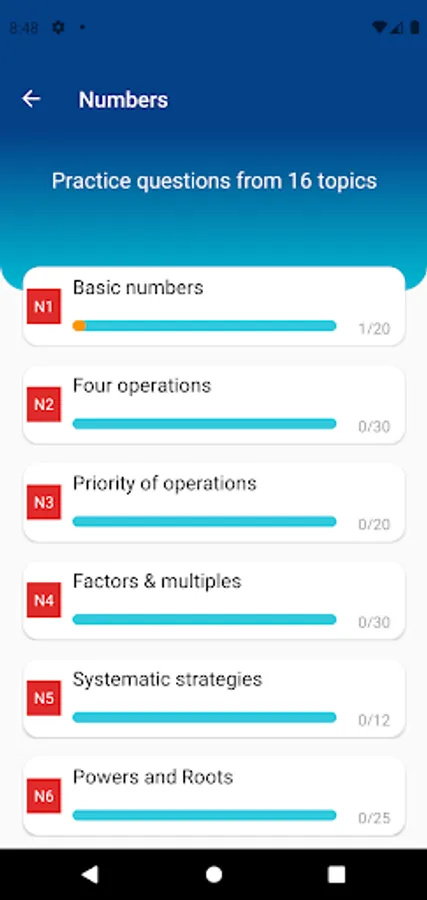 The app also helps you to monitor your progress and scores and shows your improvement by topic so that you can focus more or less on topics as required.