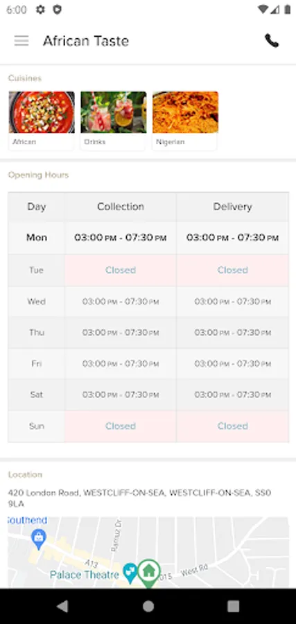Order food online from African Taste! It's so easy to use, fast and convenient. Try our new, online app which contains our entire takeaway menu. African Taste is located in WESTCLIFF-ON-SEA, and is proud to serve the surrounding areas.