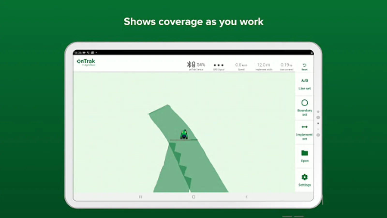 Paired with a onTrak receiver and light bar, the onTrak app helps the operator of an agricultural machine maintain the optimum course of travel to ensure that resources are applied as accurately as possible.
