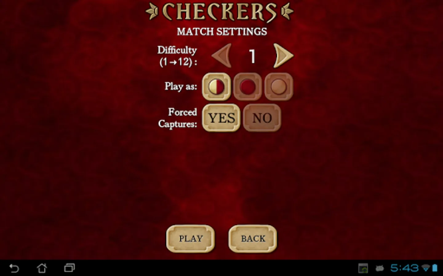 Checkers from AI Factory provides the best place to play Checkers on Android, supporting classic opening play and game review. Slick polished graphics, multiple boards/pieces, full options and play/undo/review support makes this the way to play Checkers on Android. Tested against and easily beats all the top rival Checkers programs!