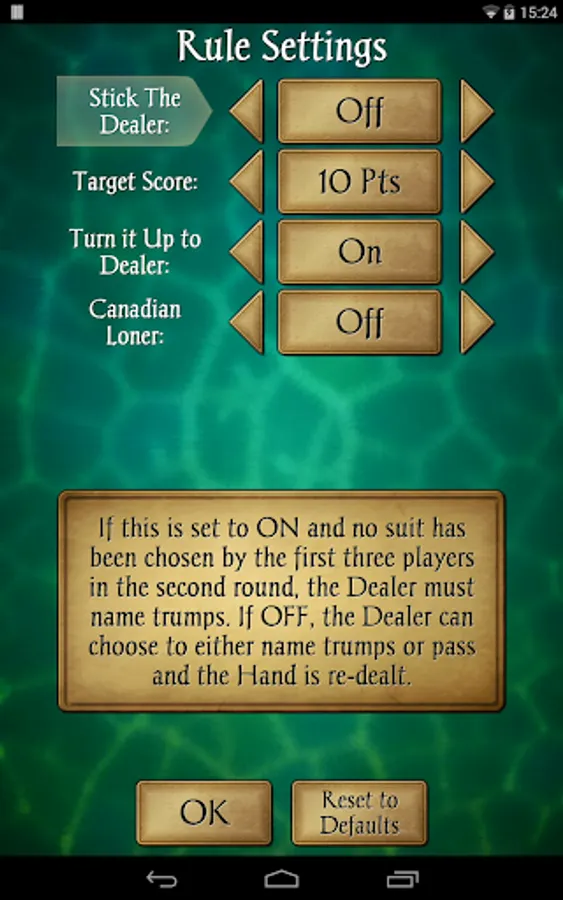 - Stick the Dealer, Turn it Up to Dealer, Canadian Loner and target score options
