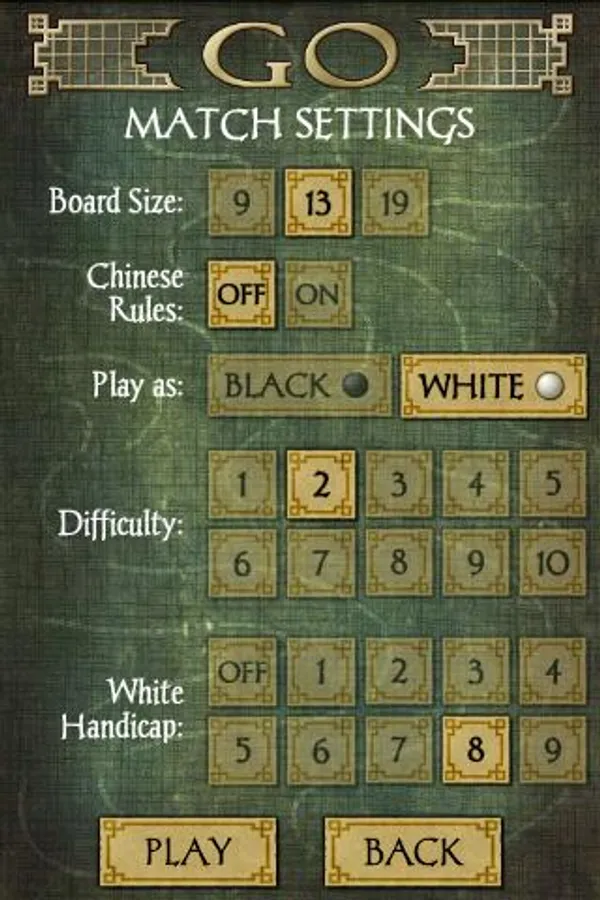 - Go Rules, Handicaps. Chinese and Japanese rules supported.