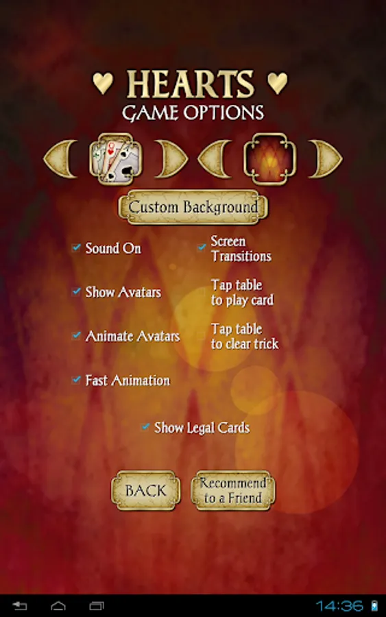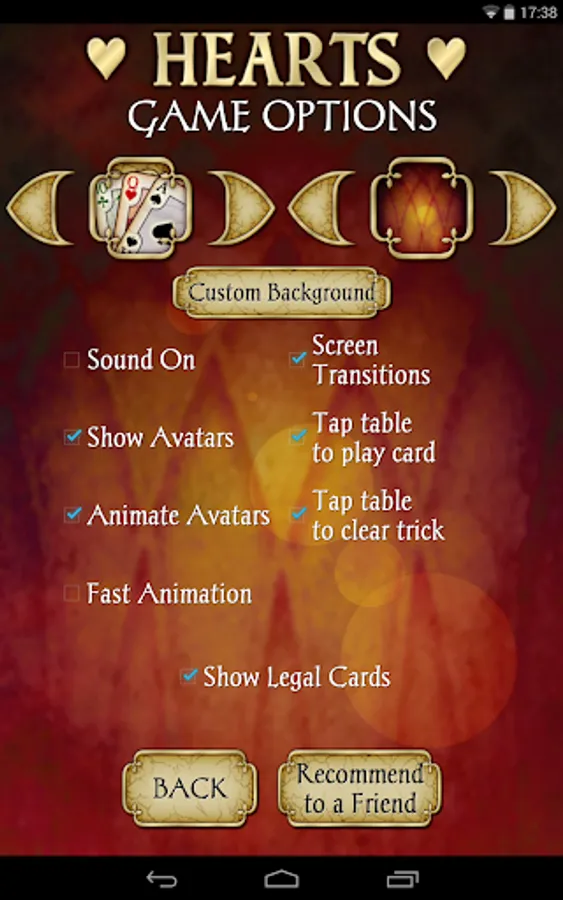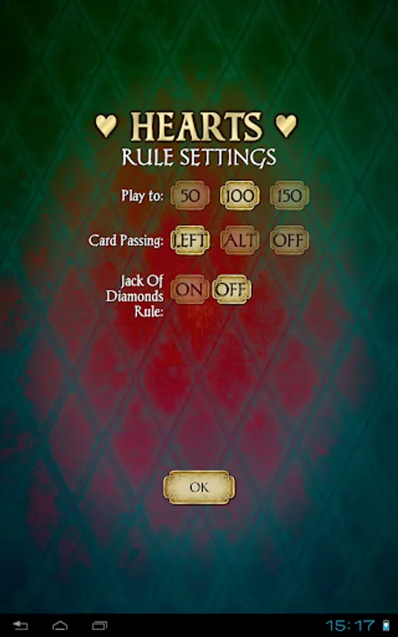 - Card passing options, including alternating (Left, Right, Across, No Pass)