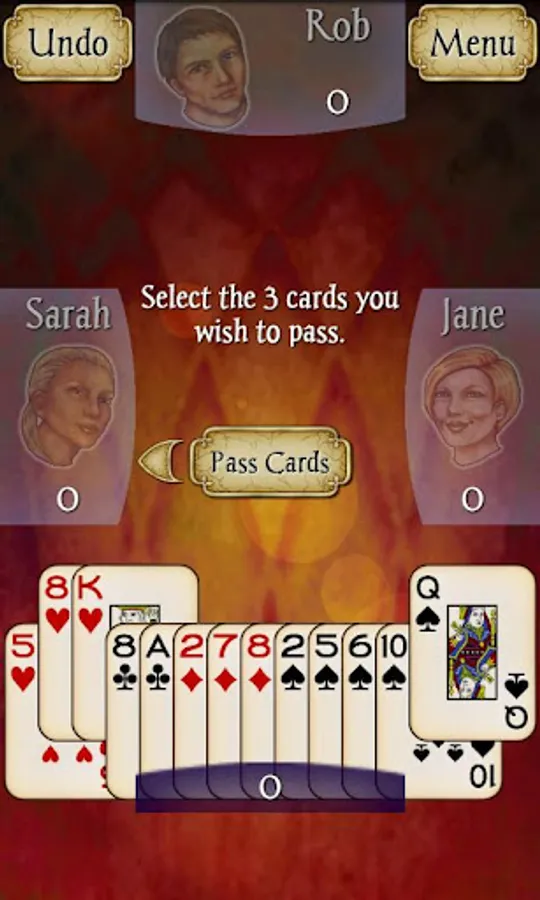- Card passing options, including alternating (Left, Right, Across, No Pass)