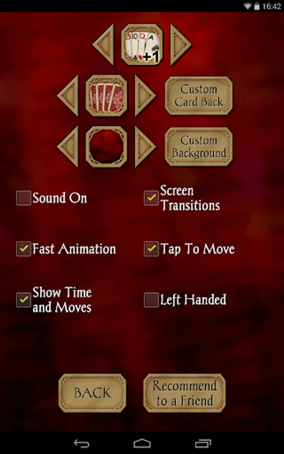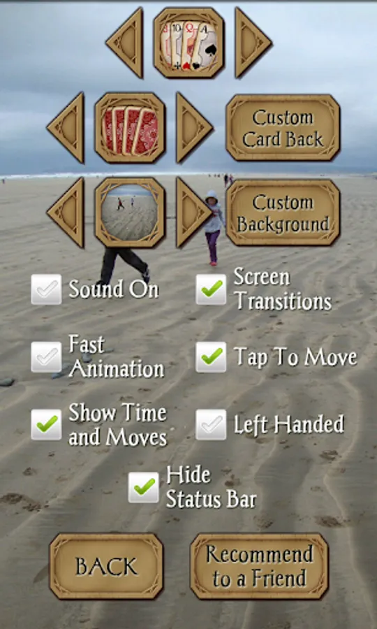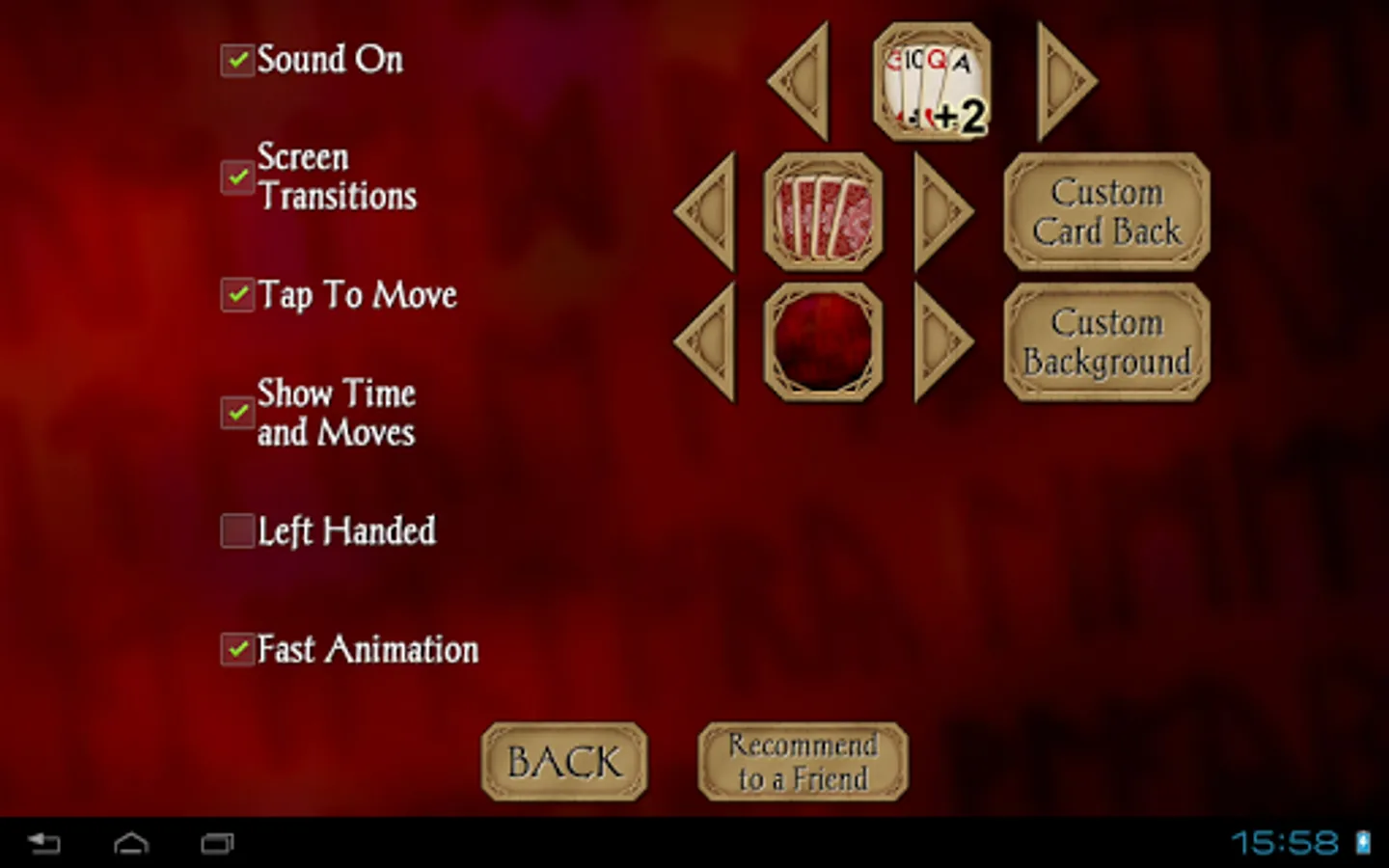 - Select from 4 different card sets, 4 card backs and 8 backgrounds or…