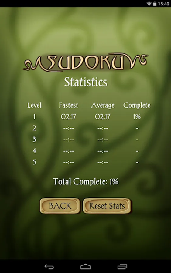 - Statistics tracking, including fastest times, average times and completion % for each level