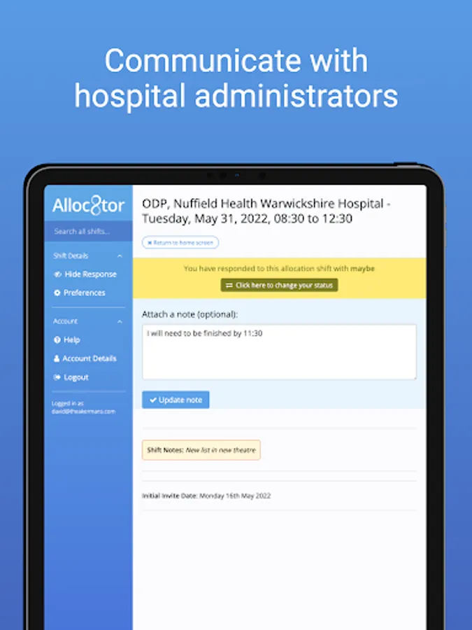 - Groups of selected preferred anaesthetists can be invited first by the secretaries before pushing invites to the wider pool of anaesthetists if necessary.