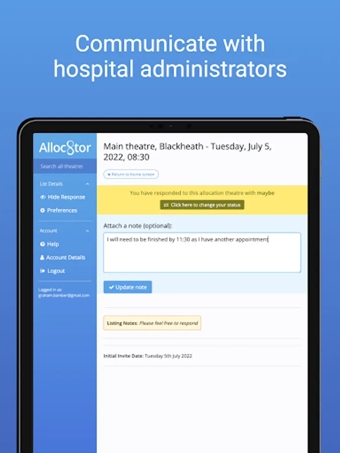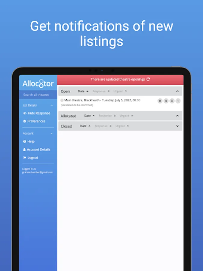 - Alloc8tor has been customised specifically by medical professionals to fill the gaps created in theatre allocation due to unscheduled cancelations.