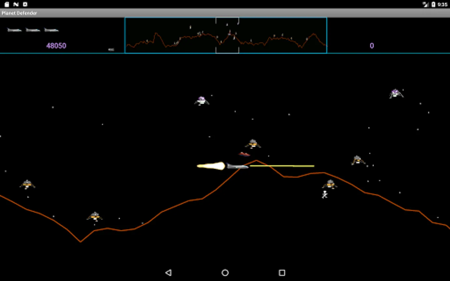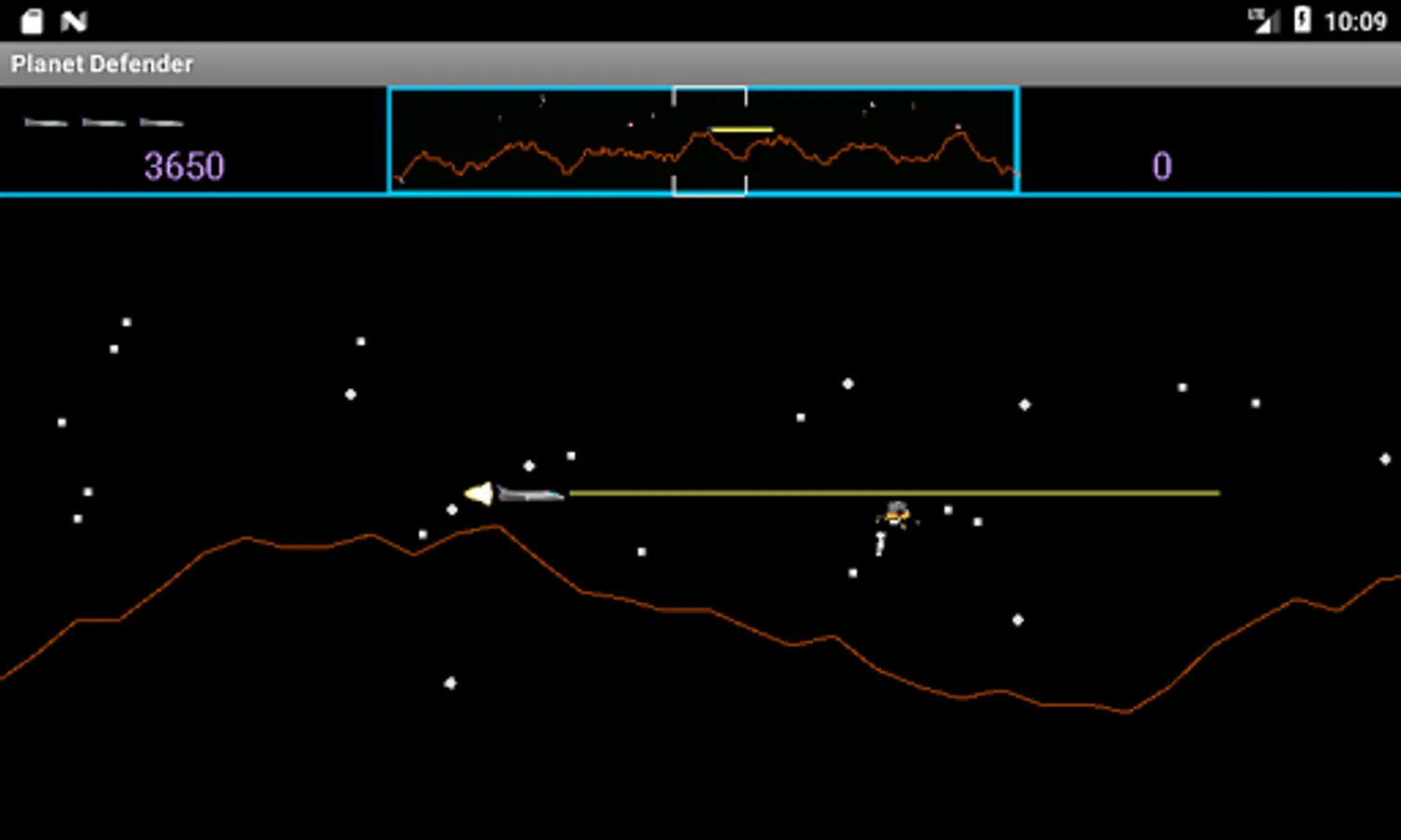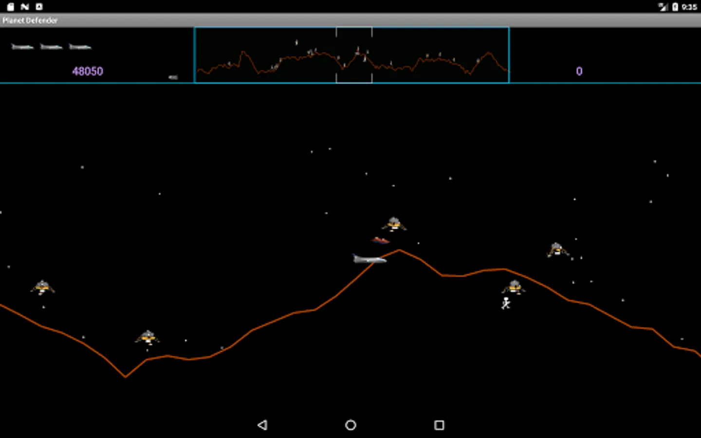 Arcade side scrolling shoot'em up inspired by (but not endorsed by) the 1981 Williams arcade game Defender. It is a horizontally scrolling shot'em up, the objective of which is to Defend you planet from waves of invading aliens while protecting the astronauts who wander around it.