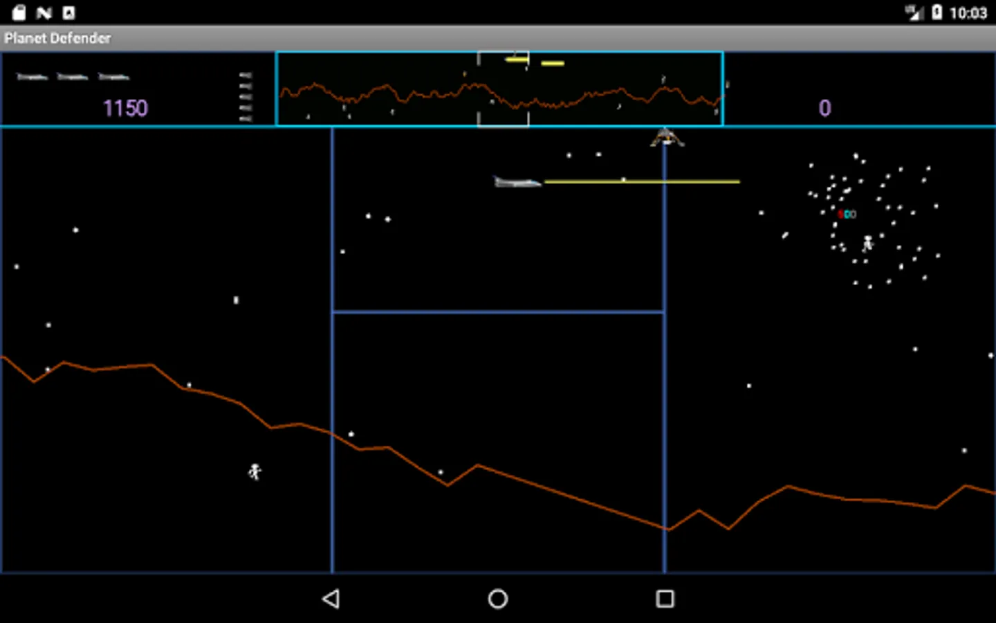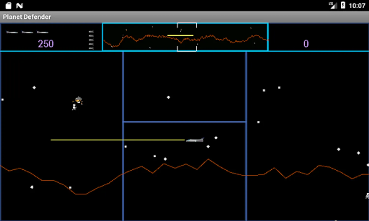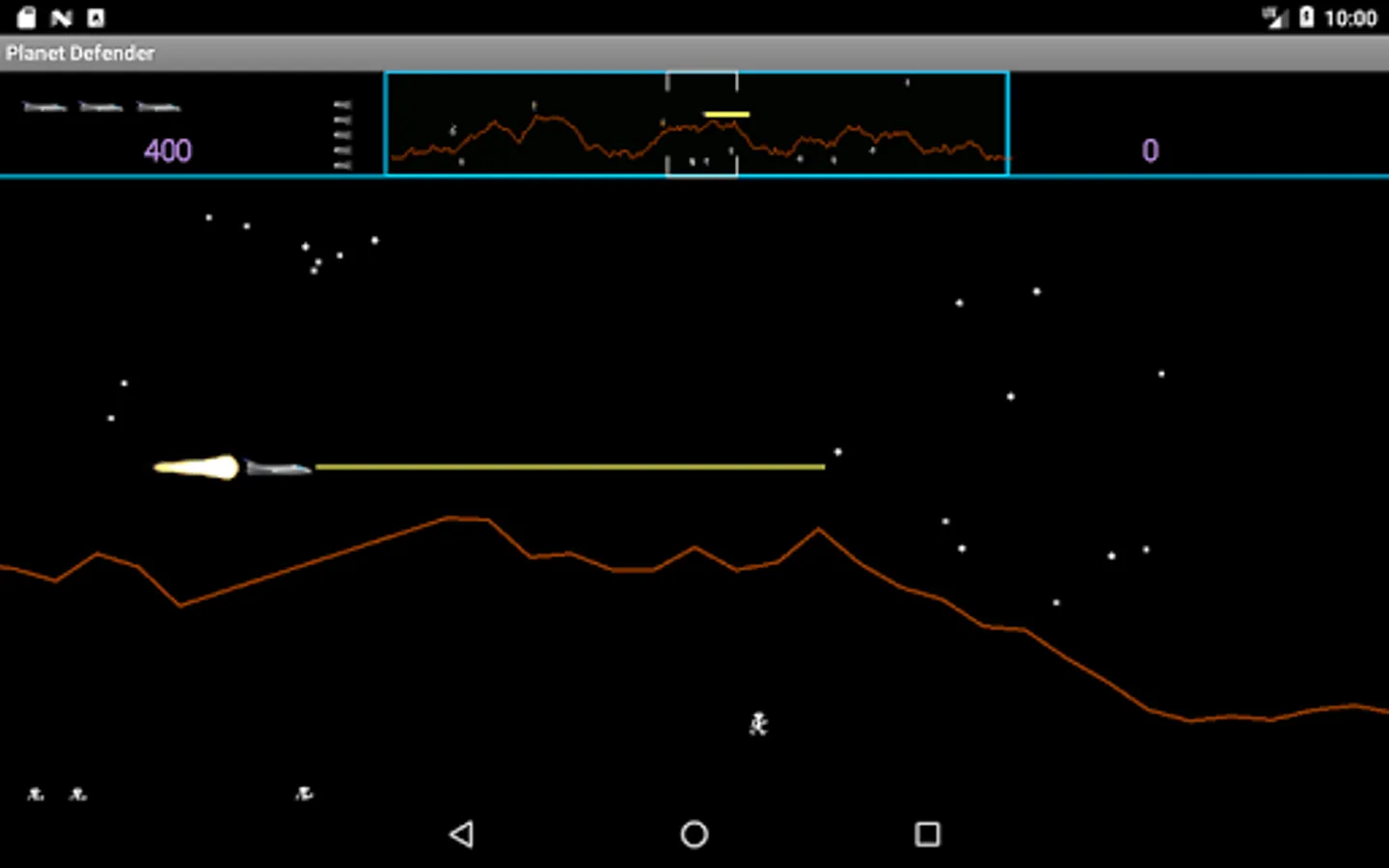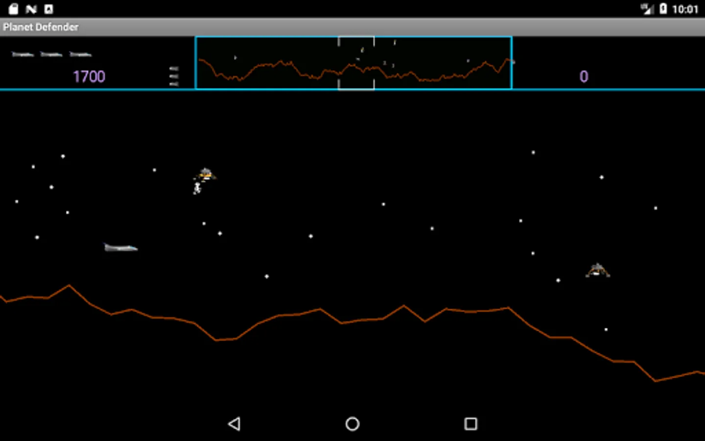 Arcade side scrolling shoot'em up inspired by (but not endorsed by) the 1981 Williams arcade game Defender. It is a horizontally scrolling shot'em up, the objective of which is to Defend you planet from waves of invading aliens while protecting the astronauts who wander around it.