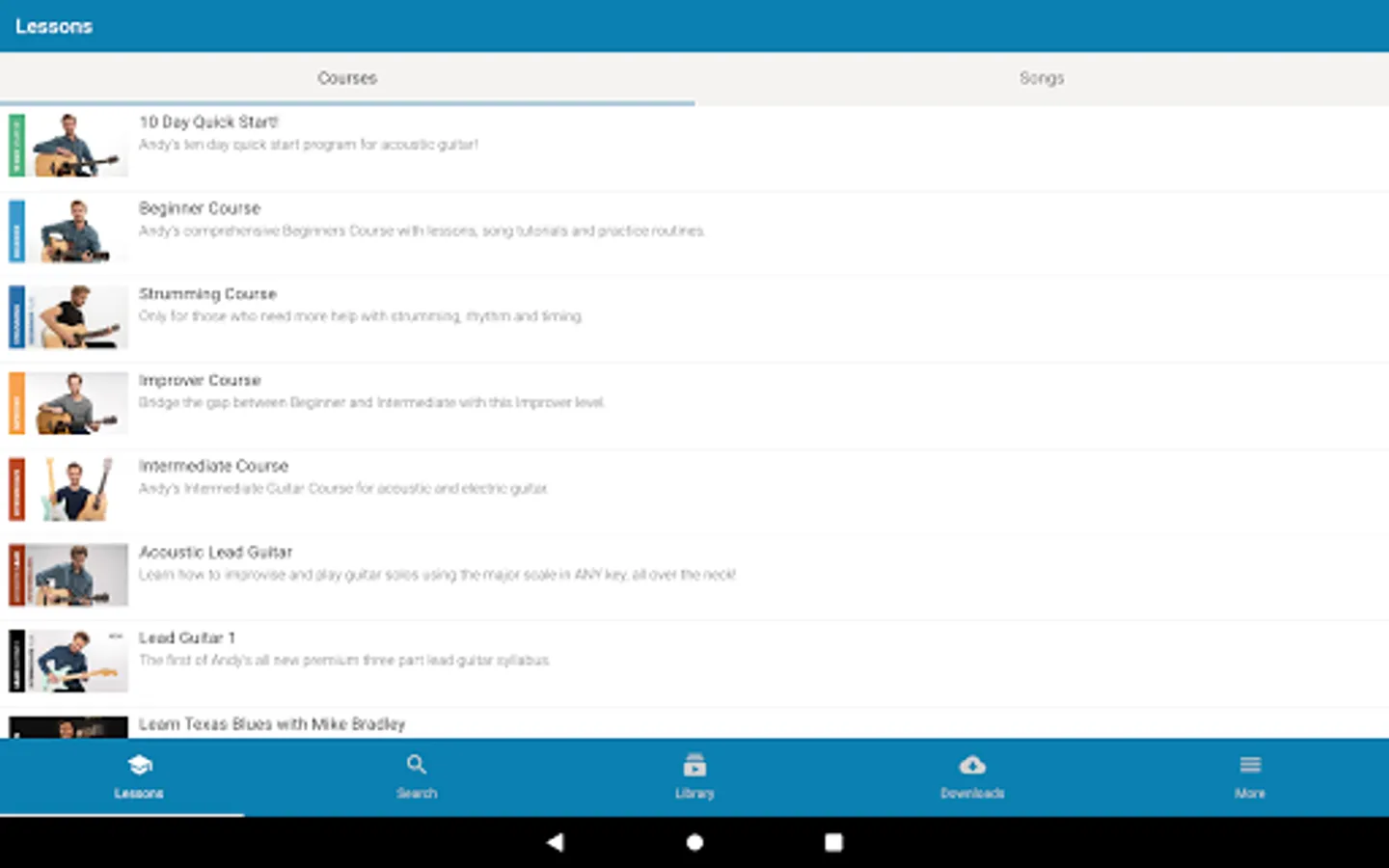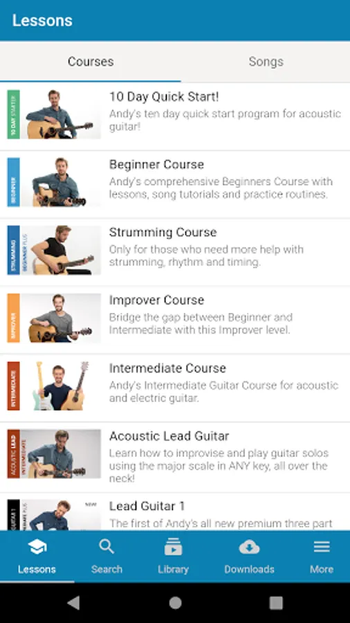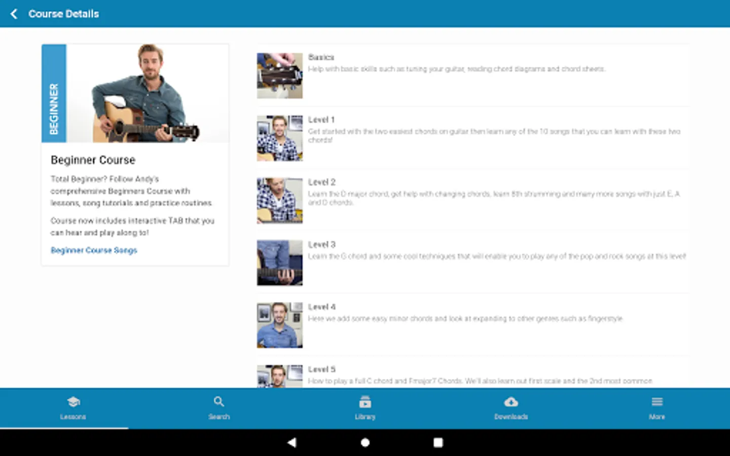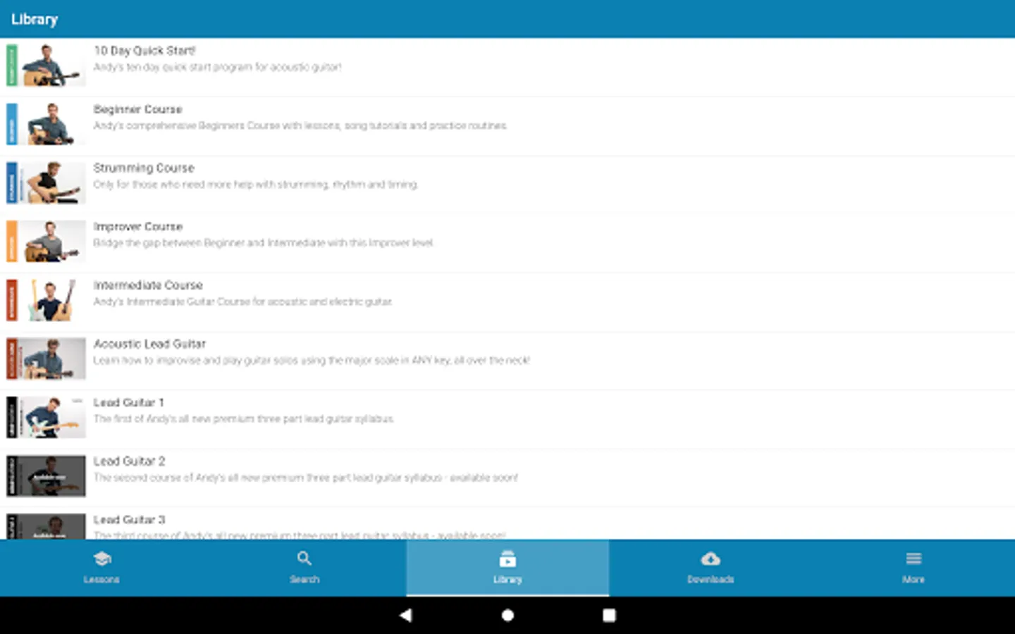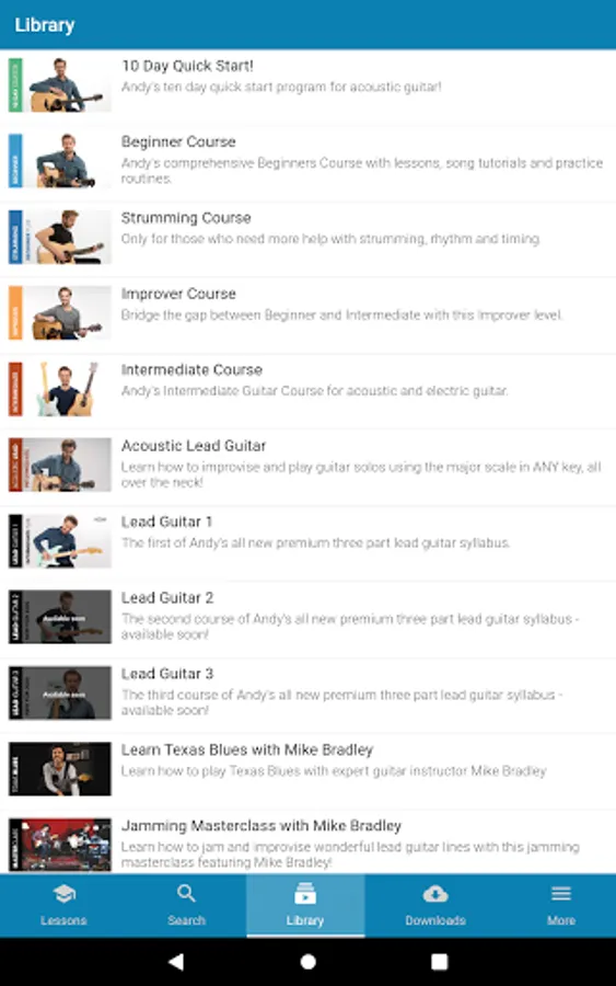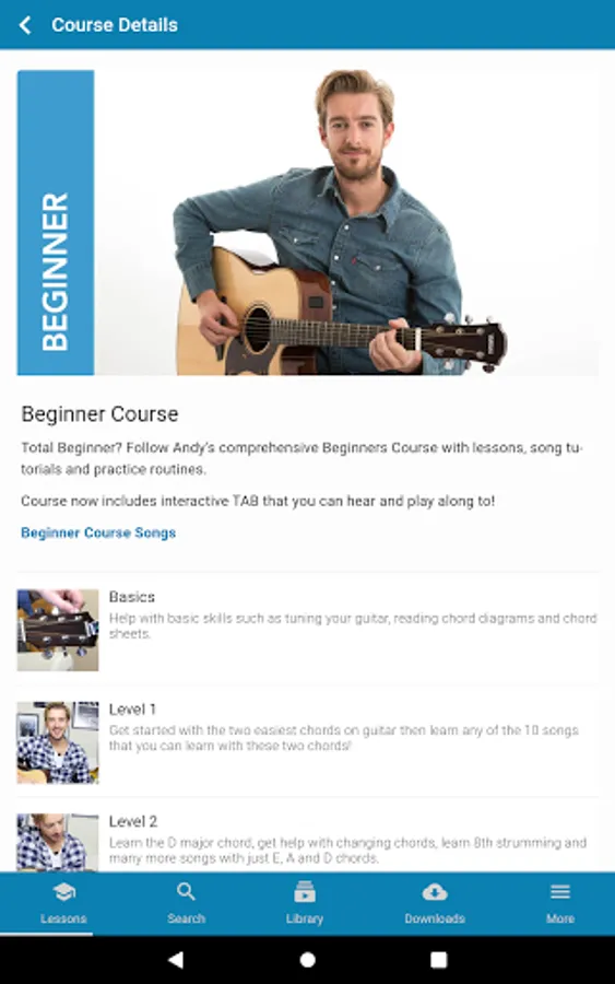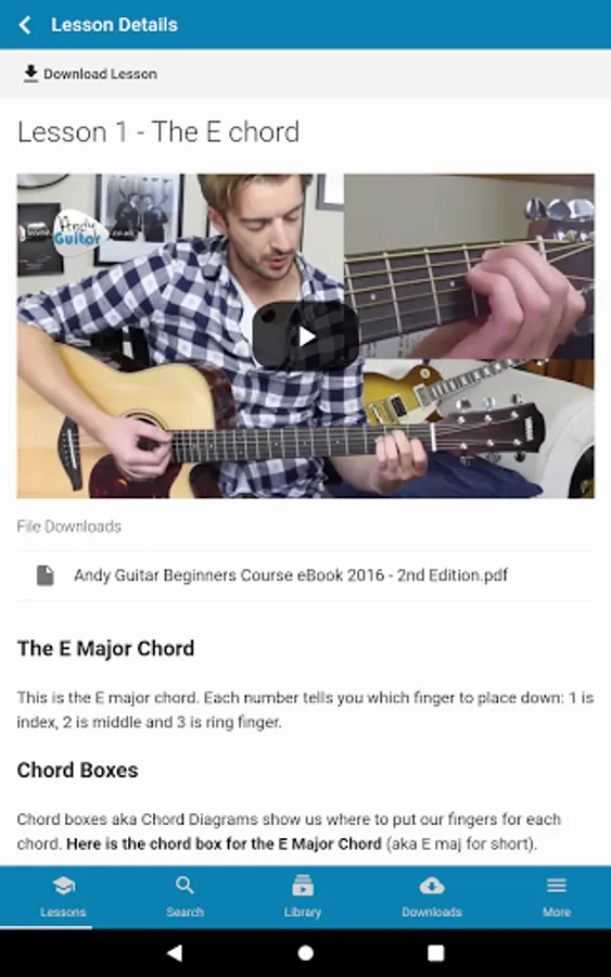 The Andy Guitar app is a great way to access the video lessons, courses and other materials available on the Andy Guitar website. If you have an account on the Andy Guitar website, you can log in with the same details and all your content is perfectly synchronised across the website and your devices.