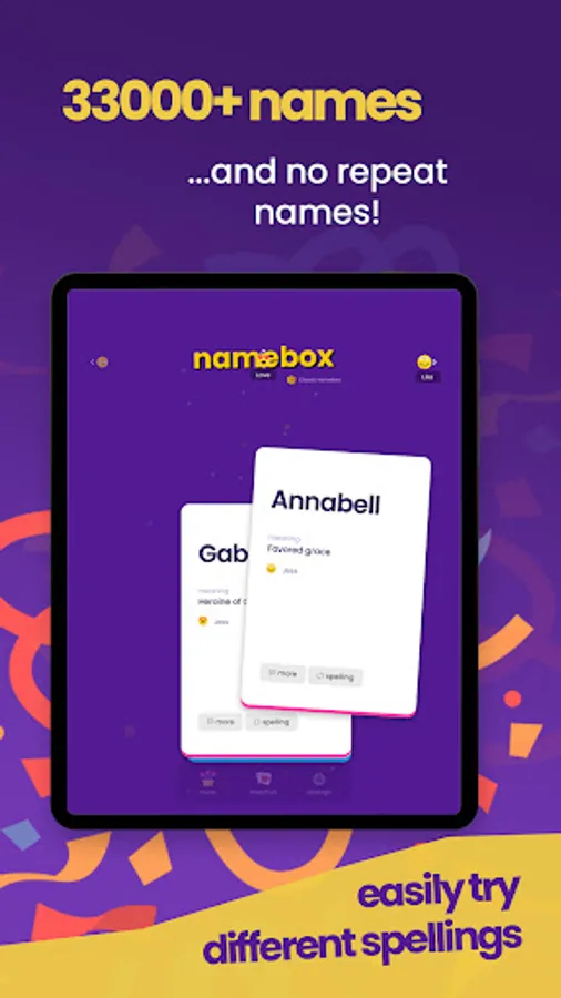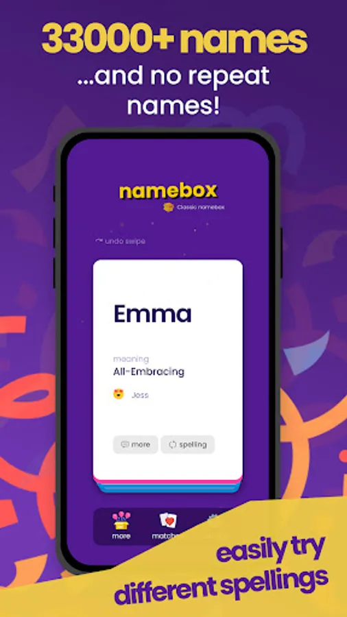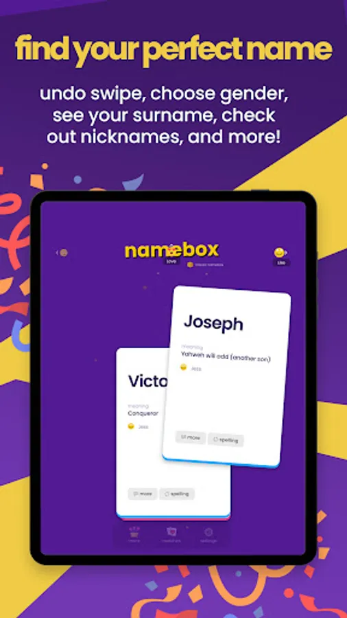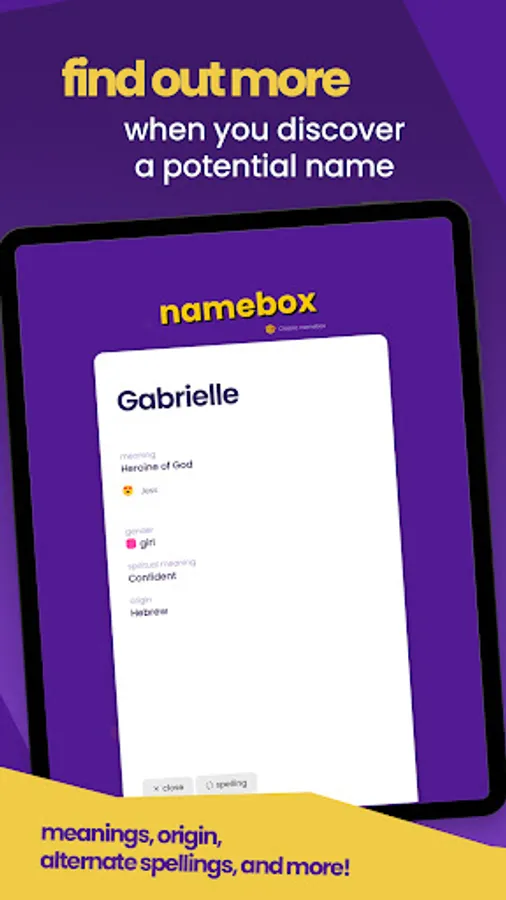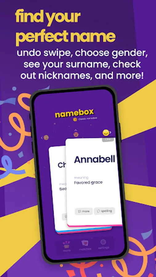 - JOIN YOUR PARTNER: get push notifications when you and your partner match on a name (you can also use Namebox on your own if you prefer).